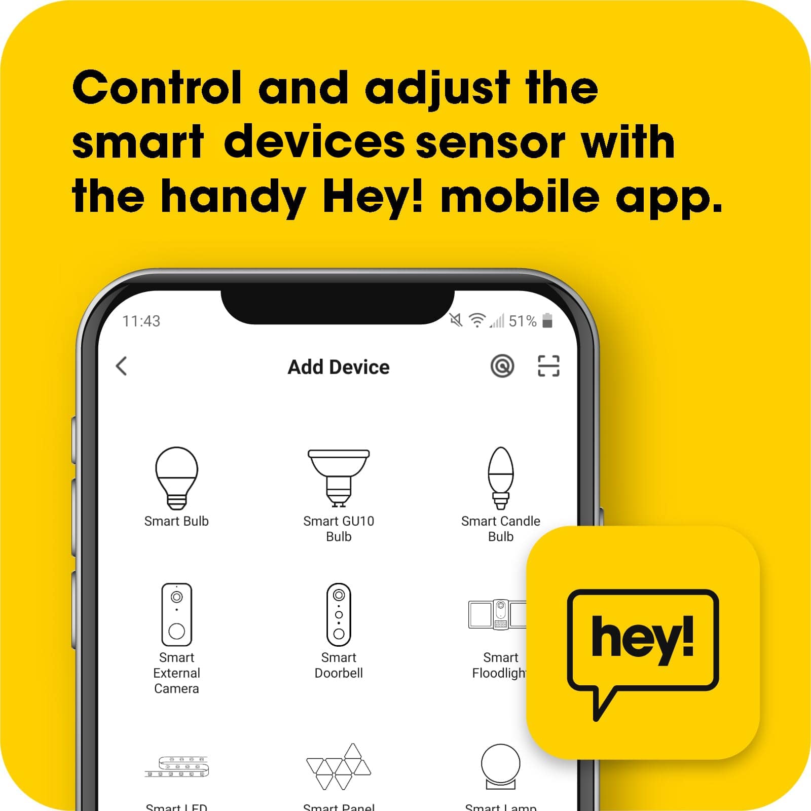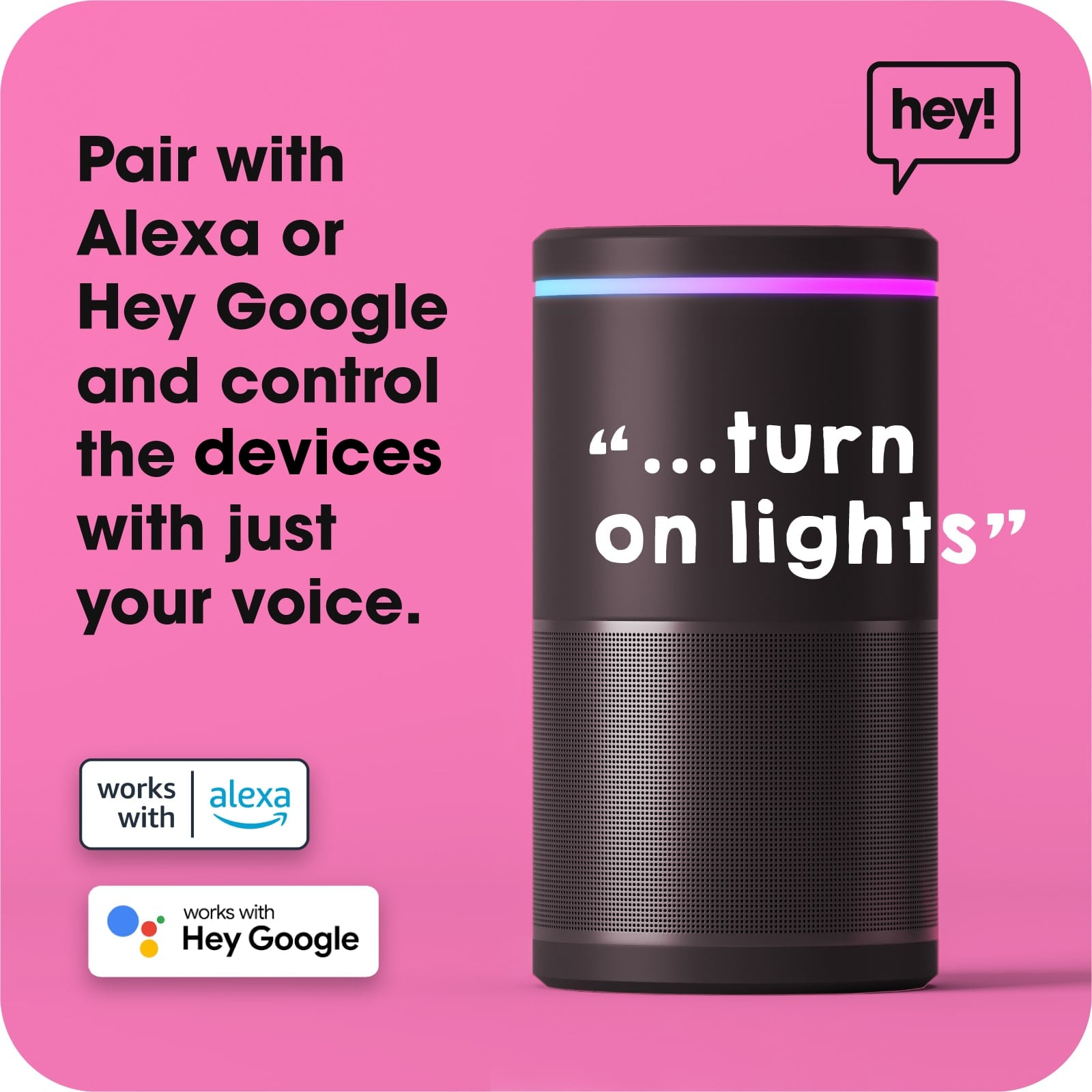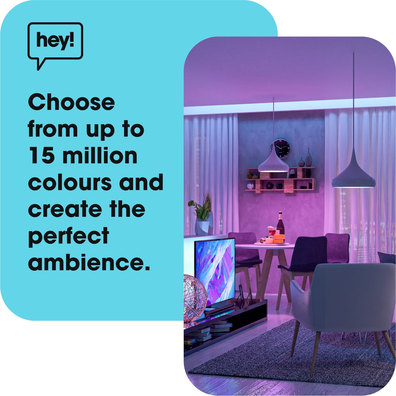 With the Hey! smartphone app you can control each part of the kit simultaneously, changing the colour, brightness and hue of your smart bulbs and LED lighting strip. Plus, the kit is compatible with Google Assistant and Amazon Alexa.