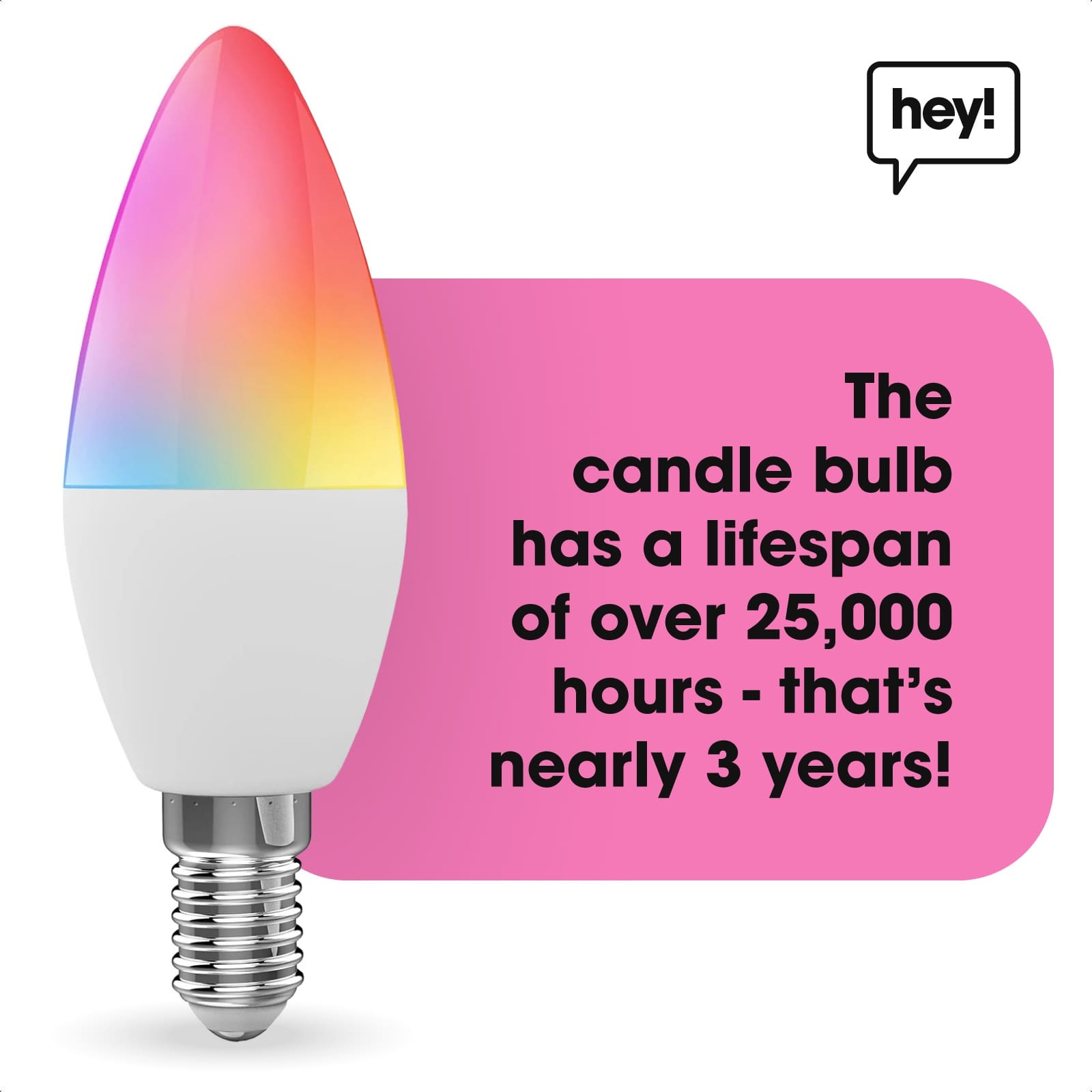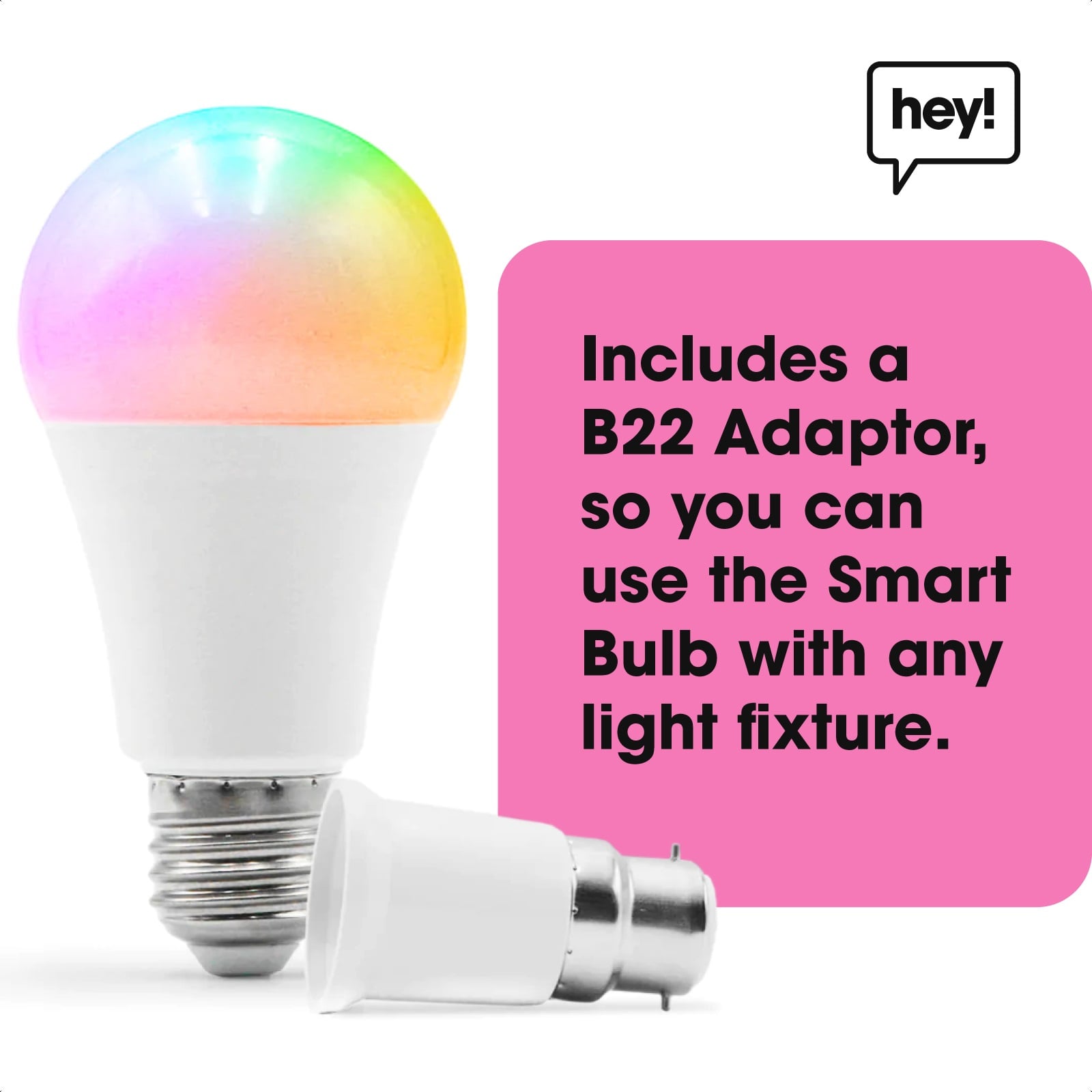 Created by Hey! to be the perfect introduction to smart home technology, the Smart Lighting Kit contains two smart bulbs, two candle bulbs (each bulb comes with a B22 adapter) and a 3M LED lighting strip - so you have everything you need to bring smart lighting into one or two rooms of your home.